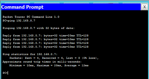 сети, была сформирована передача простого сообщения (Simple PDU) от PC_3-ROOM2 к PC_1-SERVROOM, а также, для тестирования связи между станциями PC_3-ROOM2 и PC_1-SERVROOM, была использована команда tracert. Результаты
