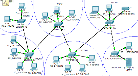 станций, сервер, принтер и некоторое количество коммутаторов со своими