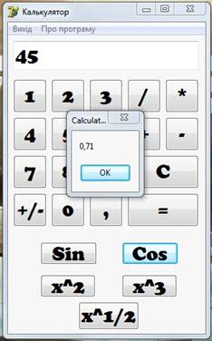 Програма повинна обраховувати синуси та косинуси, а також мати інтуїтивно та