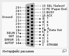 такого інтерфейсу сигнальні лінії (8 для передачі даних, строб, лінії стану