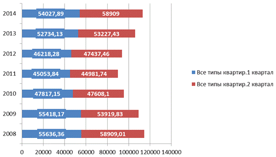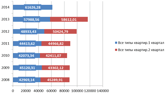 жилья в апрелe 2014 года составила 63832 руб. за квадратный метр. По сравнению