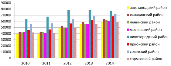 Новгороду на рынке готового жилья в зависимости от района. (руб./м2)