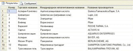 SELECT A. Номер, A. [Торговое название], A. [Международное