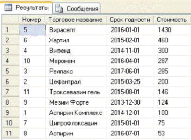 SELECT A. Номер, A. [Торговое название], A. [Срок годности], A. Стоимость