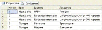 SELECT A. Номер, A. Врач, A. Диагноз, A. Лекарства FROM dbo. Рецепты AS ABY A.