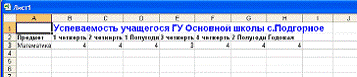 Sheet.Cells[1,2]:='Успеваемость учащегося ГУ Основной школы