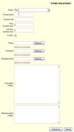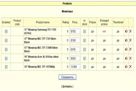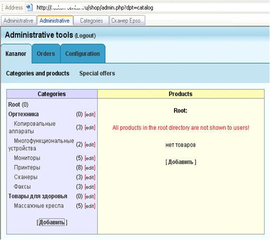 На начальном этапе в проекте интернет - магазина реализованы такие