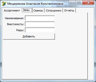 залов в базу данных кинотеатра.