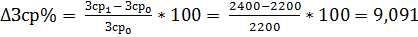 ΔФЗП(ЧР) = ΔЧР*Зср0 + 1/2ΔЧРΔЗср = 2*2200 + 1/2*2*200 = 4600 руб.