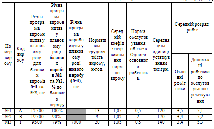 на вибір (для калькулювання собівартості виробу) та на річну програму ( для