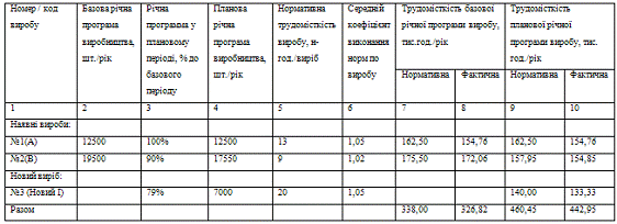в таблиці структури промислово-виробничого персоналу та визначеної раніше