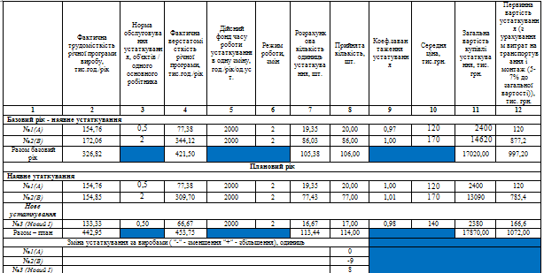 розрахунок потреби у технологічному устаткуванні та його первинної вартості для