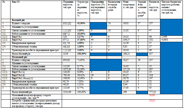 основних засобів та річних амортизаційних відрахувань для базового та планового
