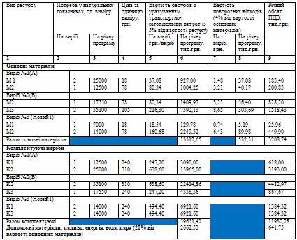 Стовпчик №6 (планова вартість ресурсу на річну програму виробництва)
