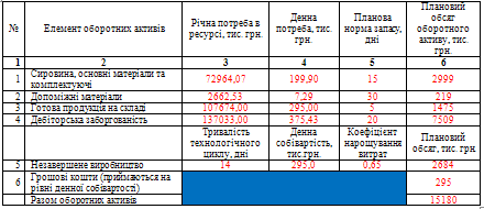 діяльності підприємства; розрахунок планового обсягу оборотних активів;