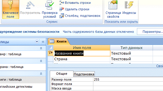 Таблица «Жанр» состоит из одного поля жанр, тип