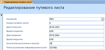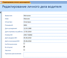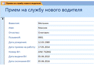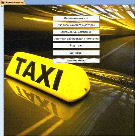 базы данных "Такси". Для разработки были применены «Microsoft Access