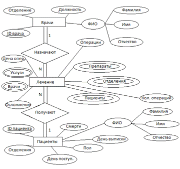 данных должна осуществлять: учет поступления пациентов (по отделениям); учет