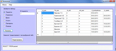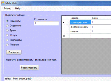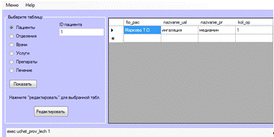 информации из БДquery = string.Empty;= "exec uchet_prov_lech "+