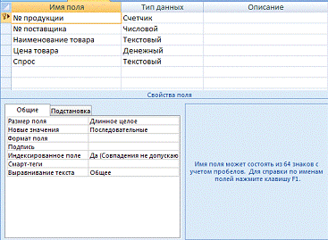 Ниже представлена структура таблицы «Товар» в конструкторе (рис.