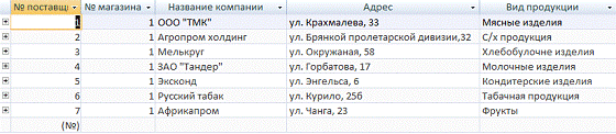 Таблица 2. «Поставщики»