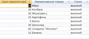 количеству товара и условие отбора - спроса «Высокий», открытый в режиме