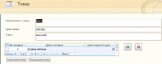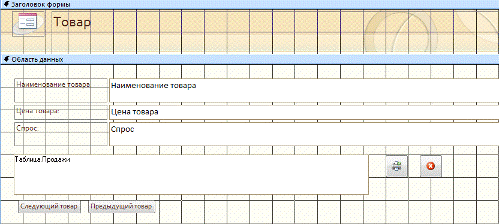 На рис. 7 показана форма «Товар» в конструкторе: