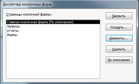 На рис. 8 показан диспетчер кнопочных форм, открытый