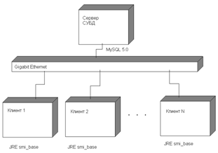Клиентское приложение подключается к базе MySQL.