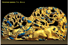 узоров и символов звериного стиля. В основе лежит бронзовая бляха, эпохи