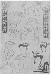 от Саяно-Алтая, рога оленя изображали преимущественно с S-образно изогнутым