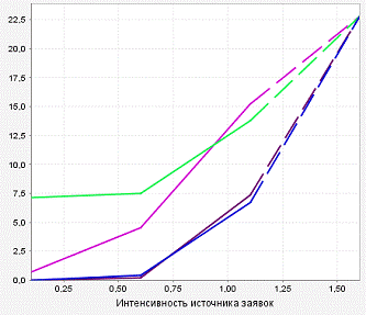 Длительности обслуживания B1 = 0.008, B2 = 0.010, B3 = 2