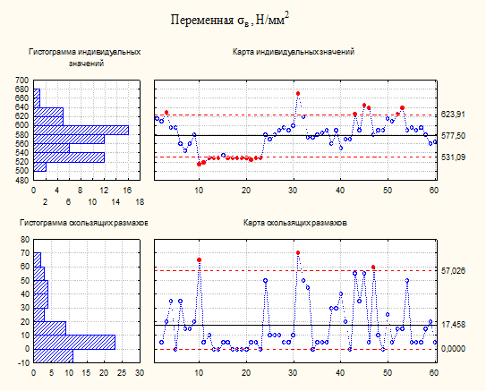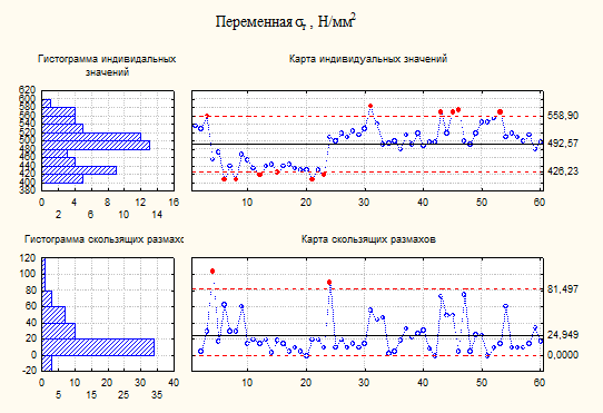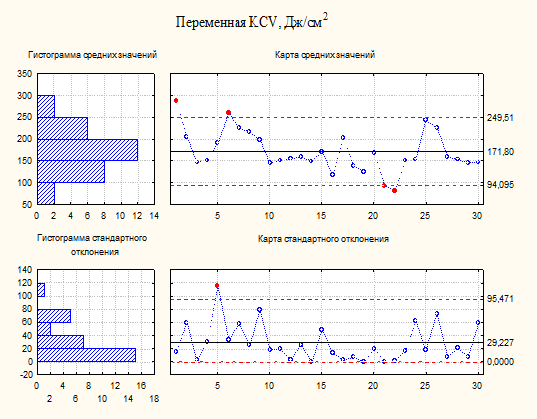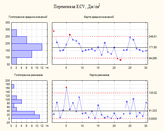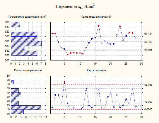 контрольных карт, исследование изменчивости и оценка годности процесса,