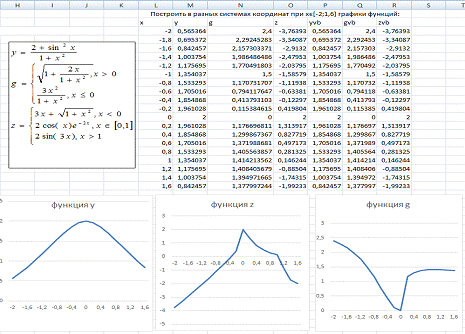 функций из п.2. Вычисление значений функций пользователя и сравнение с