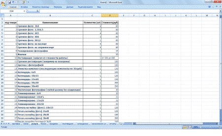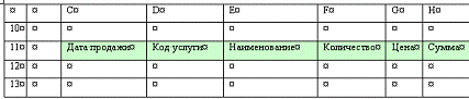 Переход на лист «Услуги»