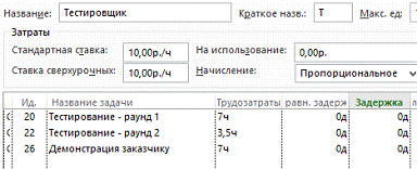 в таблицах 3.1 и 3.2 описаны центры затрат и параметры некоторых работ.