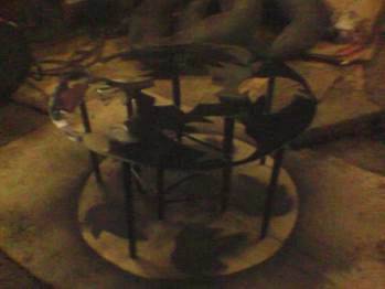 С помощью болгарки вырезала весь орнамент в металлической столешнице. (