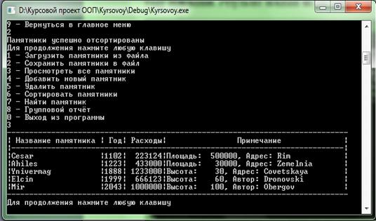 }(f);// закрываем файл.::cout<<"Все памятники были прочитаны