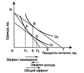 расходуя меньше денег на покупку одного товара и больше на покупку другого