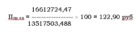Прибыль на 100 м суровой ткани Ппр.ед, руб, определяем по формуле: