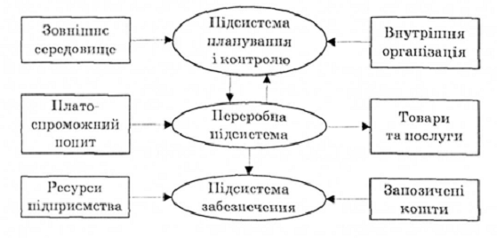 підсистем: переробна; забезпечувальна та підсистема планування і контролю,що зображено на