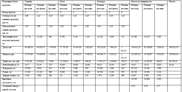Таблиця 2.2 - Показники реалізації виробництва за звітній