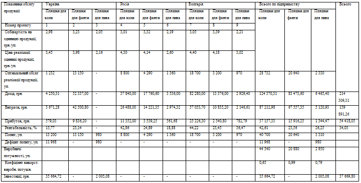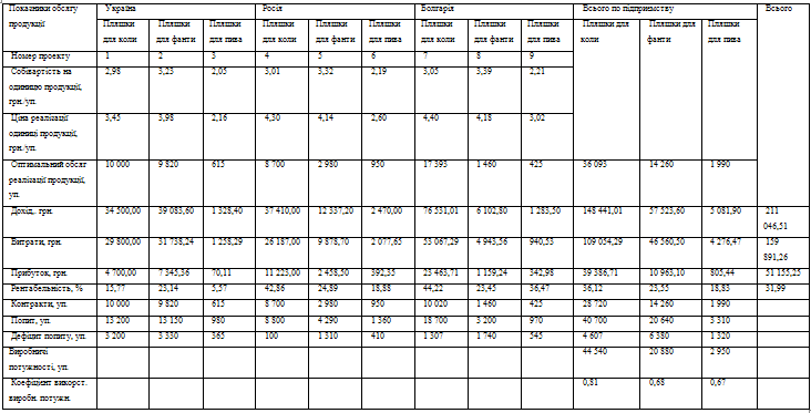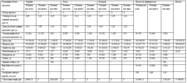 Таблиця 2.7 - Оптимальний план виробництва та реалізації