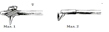 гострим кінцем і сплющмо її. Металевий дзьобик вставляємо в щілину дерев’яної