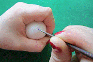 скорлупі яйця і акуратно висвердлити круглим надфілем із загостреним кінцем.