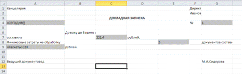 Рисунок 1 Лист Докладная записка в режиме отображения формул