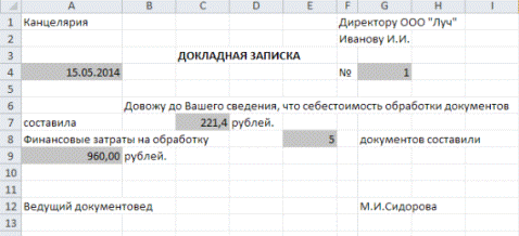 Лист Докладная записка представлен на рис. 2: