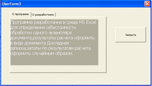 Форма Справка о программе и ее разработчике открывается при