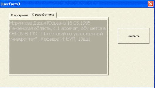 Рисунок 7 Форма Справка о программе и ее разработчике при