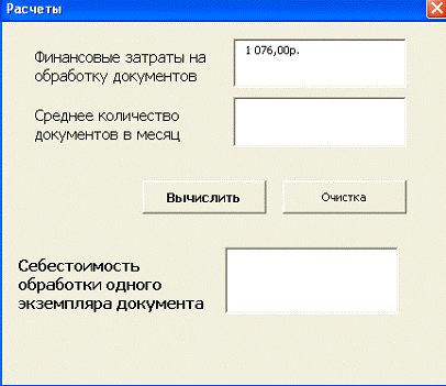 обеспечивает расчет себестоимости обработки одного экземпляра документа. Так же
